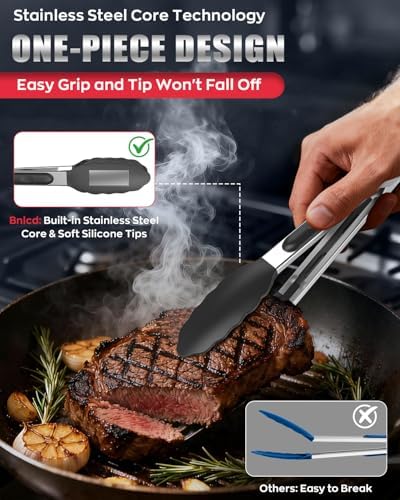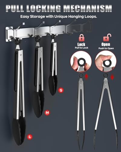 The silicone tips provide a non-slip grip, ensuring you can easily handle food without worrying about burns or slips. The non-stick design means you can use these tongs with confidence on all your favorite cookware, preserving the integrity of your pots and pans. The convenient locking mechanism allows for easy storage, keeping your kitchen organized and clutter-free.