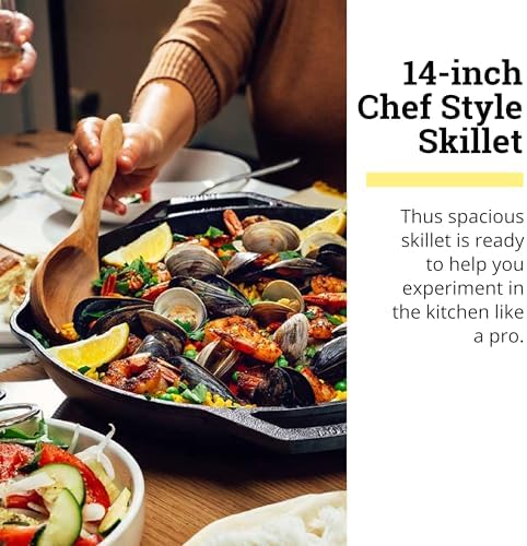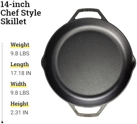 Introducing the Lodge Chef Collection 14″ Chef Style Skillet, the ultimate kitchen companion for both professional chefs and home cooks alike. Crafted from durable cast iron, this skillet offers unparalleled heat retention and even cooking, making it perfect for searing, sautéing, and frying. The spacious 14-inch design provides ample cooking surface for family-sized meals, while the ergonomic handle ensures a comfortable grip for easy maneuvering.