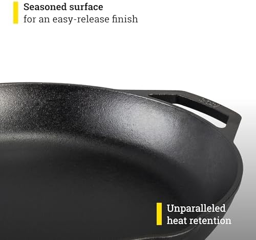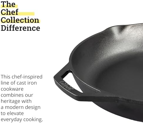The pre-seasoned finish allows for a natural, easy-release surface that improves with each use, enhancing the flavor of your dishes. Whether you’re whipping up a hearty breakfast, a savory stir-fry, or a classic steak, this skillet is versatile enough to handle it all. Compatible with all cooking surfaces, including induction, and oven-safe up to 500°F, the Lodge Chef Collection Skillet is designed for convenience and performance.